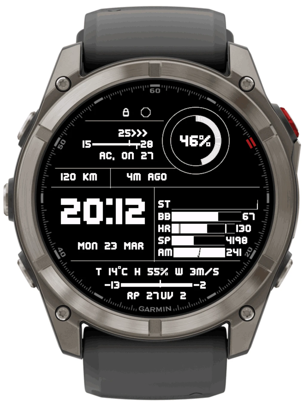 - Works with the same Garmin lineup as the watch face below.